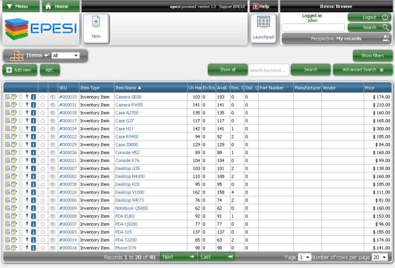 - Based on EPESI Record Browser - that means favorites/watched, filters and sorting, and all other benefits of RB