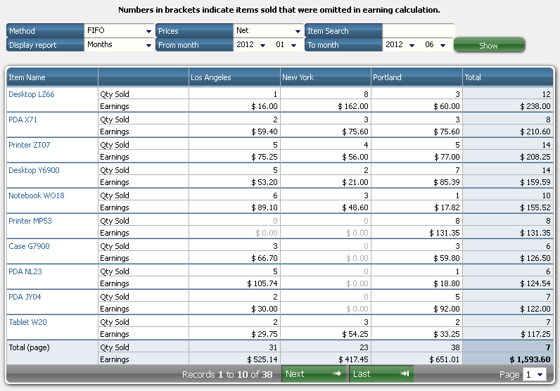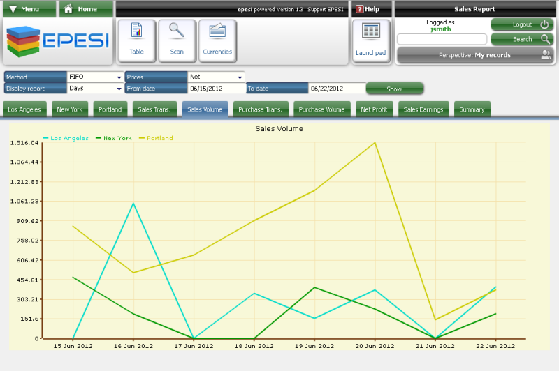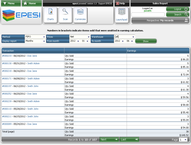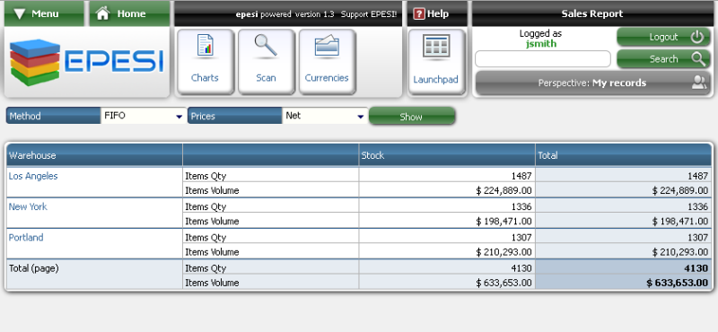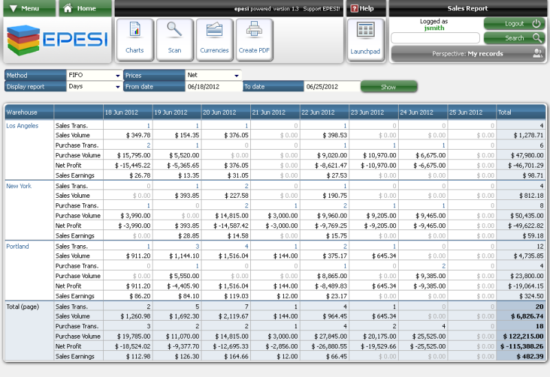 - Reports - sales by item, transaction, warehouse or employee, stock value by warehouse